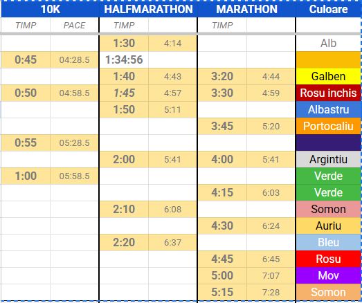 ATENTIE! Chiar daca o grupa de semimaraton este la acelasi pace cu o grupa de maraton ele sunt in blockstarturi diferite. Acest lucru este datorat faptului ca si semimaratonistii sunt alocati diferit ca si timpi in blockstarturi fata de maratonisti.
